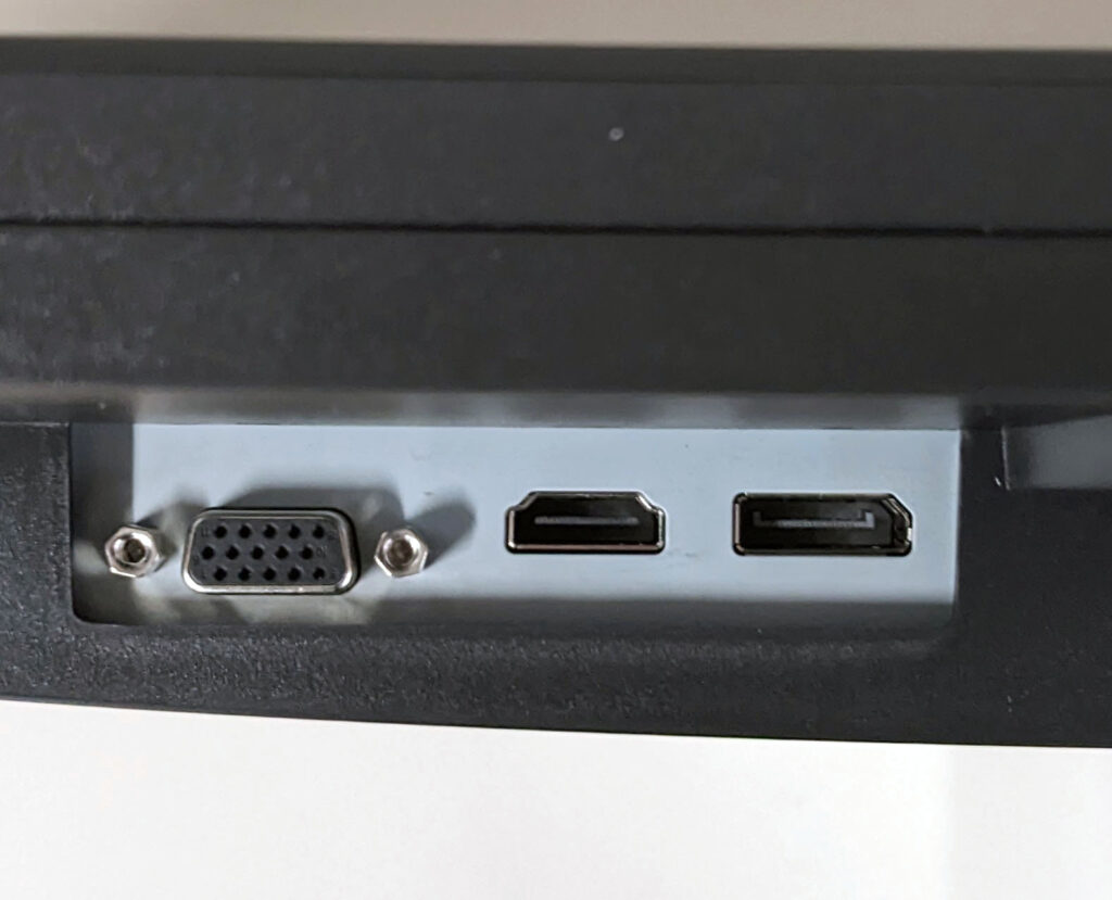 接続端子は、D-Sub(VGA)ポート×1、HDMIポート×1、DisplayPort×1です。