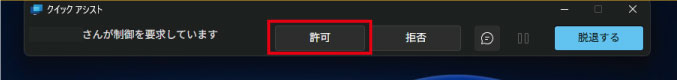 画面上部に、接続元(サポートをする側)から制御を許可するよう通知が届くので、「許可」を選択します。