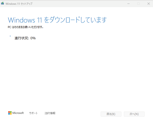 Windows 11のダウンロードとメディアの作成が始まるので、完了までしばらく待ちます。
